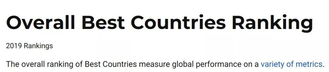 近日,美国杂志《美国新闻与世界报道》公布了2019年全球最佳国家排名。